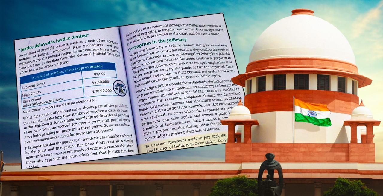 सुप्रीम कोर्ट की सख्त टिप्पणी हाल ही में प्रकाशित सामाजिक विज्ञान की पुस्तक ‘एक्सप्लोरिंग सोसाइटी: इंडिया एंड बियॉन्ड’ के चौथे अध्याय में न्यायपालिका की ईमानदारी पर सवाल उठाने वाले तथ्य शामिल किए गए थे। इस पर सुनवाई करते हुए मुख्य न्यायाधीश सूर्यकांत ने कहा, “किसी भी स्थिति में किसी को न्यायपालिका के सम्मान के साथ खिलवाड़ करने की अनुमति नहीं दी जा सकती। ऐसी कोई भी सामग्री जो न्यायिक सत्यनिष्ठा पर सवाल खड़े करे, उसे बर्दाश्त नहीं किया जाएगा।” अदालत ने इस पुस्तक की छपाई और वितरण पर भी प्रतिबंध लगा दिया था।