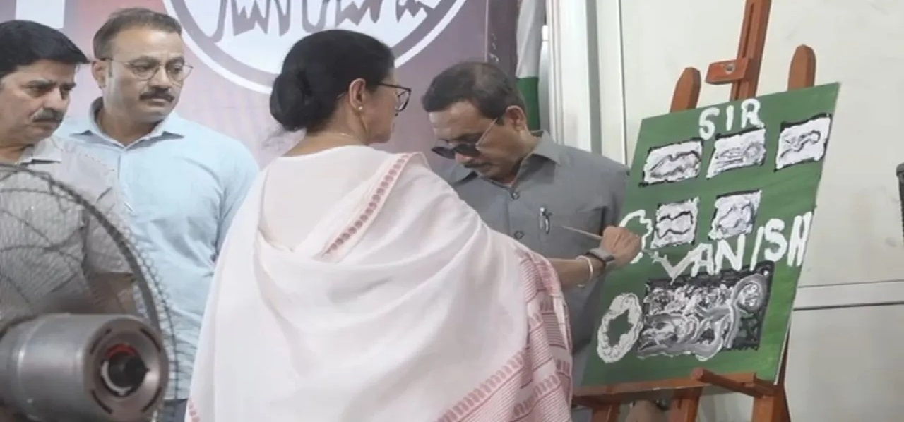 पश्चिम बंगाल में चुनाव से पहले सियासत अब कैनवास और रंगों तक पहुंच गई है। मतदाता सूची से नाम काटे जाने के विरोध में धर्मतला के मेट्रो चैनल पर ममता बनर्जी का धरना मंगलवार को पांचवें दिन भी जारी रहा। इसी दौरान मुख्यमंत्री ने एक पेंटिंग बनाई और उस पर ‘वैनिश कुमार’ लिखकर मुख्य चुनाव आयुक्त ज्ञानेश कुमार पर सीधा निशाना साधा। ममता का आरोप है कि चुनाव आयोग ने सुधार के नाम पर लाखों वैध मतदाताओं के नाम लिस्ट से ‘वैनिश’ (गायब) कर दिए हैं।